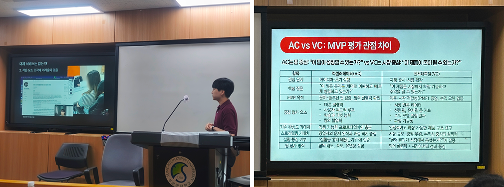 추가로 학교에서 하는 창업프로그램에 지원해 ‘Speak2UI‘의 MVP를 개발하고 AC, VC 투자자분들께 피드백 받는 시간을 가졌다. 학술 연구에서는 태클 걸 수 없는 완벽한 결과물을 발표해야 했지만, 스타트업에서는 아이디어를 빠르게 구현해내고 사용자에게 피드백 받는 단계를 훨씬 중요하게 여기는 분위기로 느껴졌다. MVP가 완벽하지 않아도 괜찮다는 점이 낯선 개념이었지만, 때론 완벽하지 않아도 부딪히고 시도해 보는 태도가 더 환영받기도 한다는 점이 반갑기도 했다.