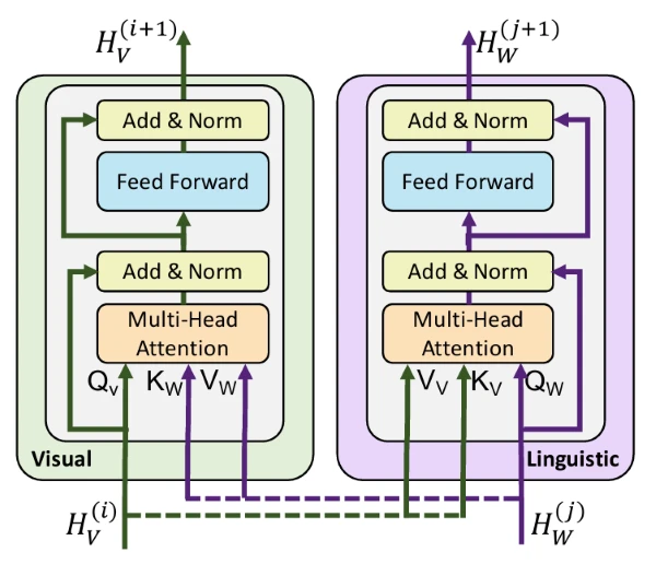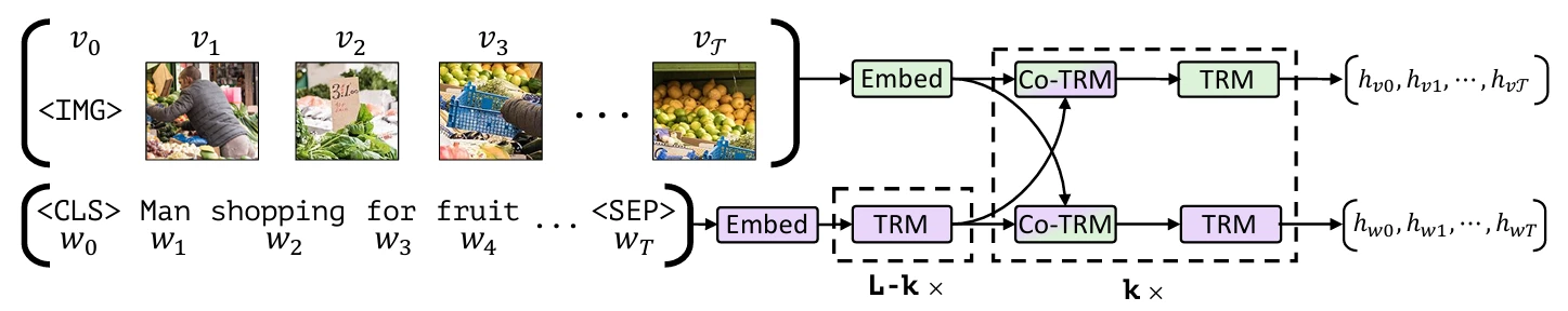 기본적으로 BERT 구조를 사용해 특징을 추출해요. 각 모달리티의 데이터를 embed한 후 co-attention을 통해 모달리티 간 정보를 상호 학습해요.