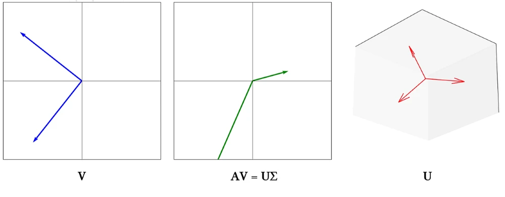 $U$와 $V$는 singular vector로 eigenvector와 같은 의미예요. $\Sigma$는 singular value로 eigenvalue와 동일해요.