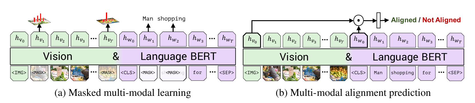 Multimodal learning도 마찬가지로 masked learning과 alignment prediction 문제를 풀며 학습한다.